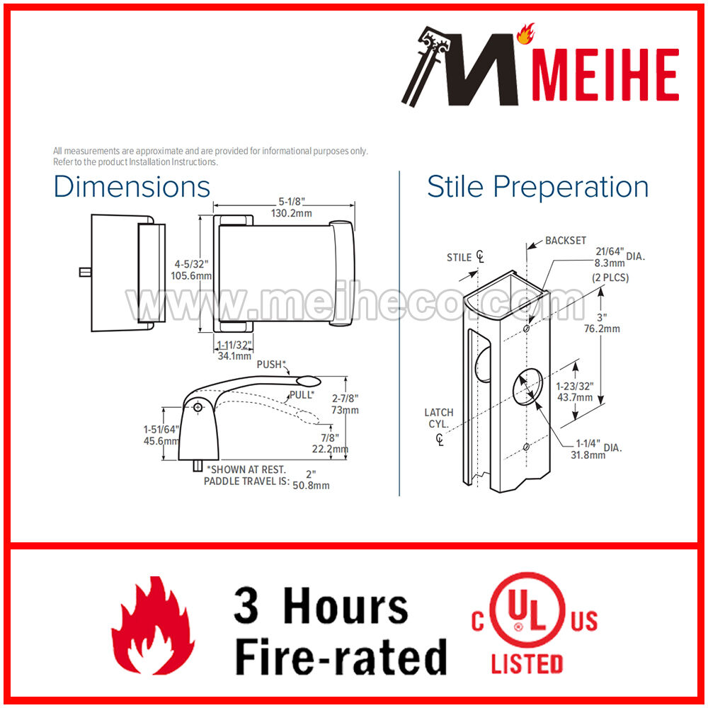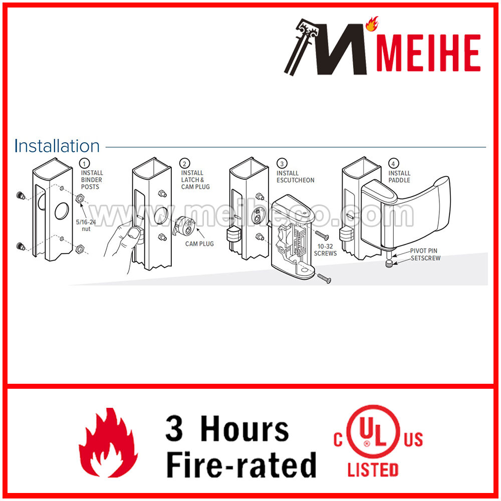 MEIHE offers the 4591 Deadlatch Paddle. an ergonomically-friendly alternative to a knob or lever handle. For use with 4591 deadlatch or any other brand of narrow stile mortise deadlatch, an ergonomically-friendly alternative to a knob or lever handle. It makes opening a latched door as natural as opening an unlatched one- just push or pull in the direction in which the door swings. Handing can be reversed on cam plug by removing C- clip and flipping the cam over and reinstalling C- clip.