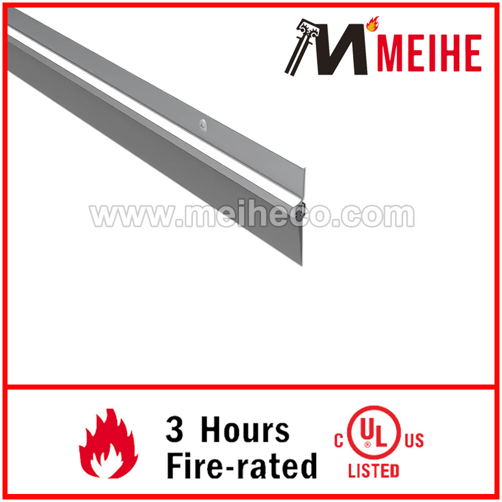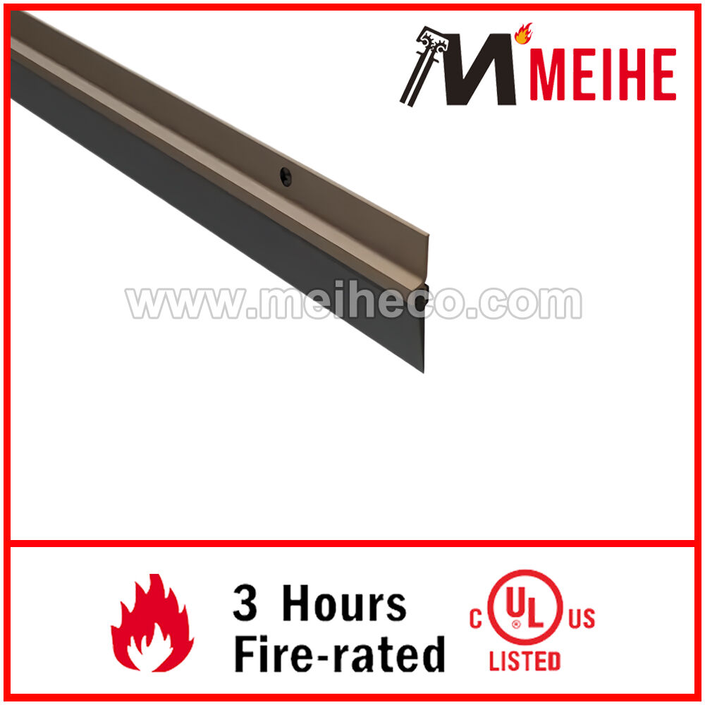 This door sweep can be used to seal up to a 1" the gap between the door and threshold or to the floor surface. It is fitted with a Vinyl extrusion. Its fire and smoke rated and can be rated for low VOC Emission. Available in choice of aluminum finishes and is custom cut to size.