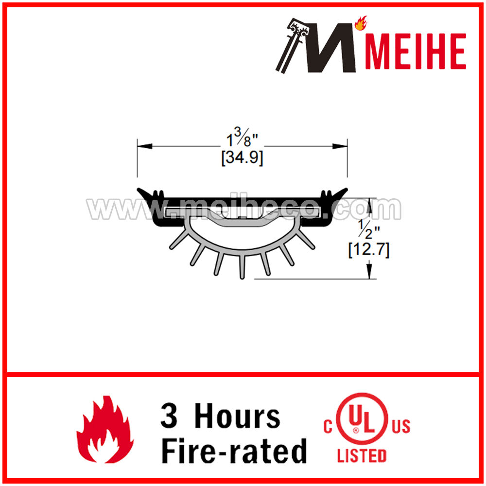 This door sweep can be used to seal up to a 1-3/50" the gap between the door and threshold or to the floor surface. It is fitted with a Vinyl extrusion. Its fire and smoke rated and can be rated for low VOC Emission. Available in choice of aluminum finishes and is custom cut to size.