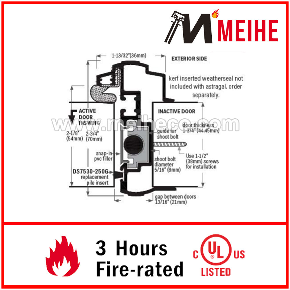 YDW607 High Quality Commercial Door Locking Astragals North American Popular Outswing Neoprene Gasket Industrial Aluminium