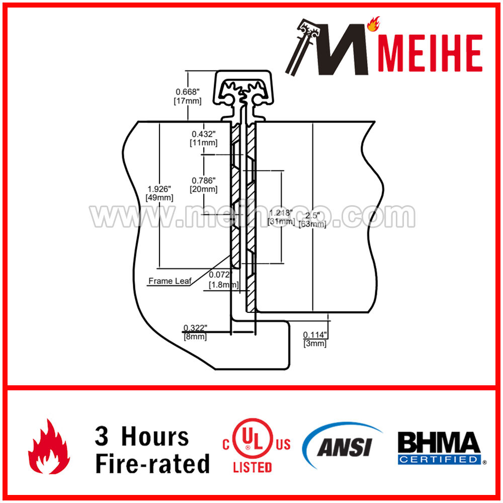 Meihe Hinges are unique, geared hinges developed to outperform most other entrance components because of the weight of the door is distributed along the full length of the door frame. It has been utilized in hospitals, schools, hotels, offices, airports, stadiums, storefronts, and commercial and industrial buildings in new construction. It is designed for superior performance.